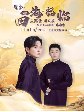 四海福临2025德云社孟鹤堂 周九良相声专场演出——北京站 时间:2025.11.01 周六 19:30 场馆:北京市 | 北京展览馆剧场 票价:380/580/780/980/1280/1580 微信订票:18515362586 电话订票:010-66552100,010-66552258